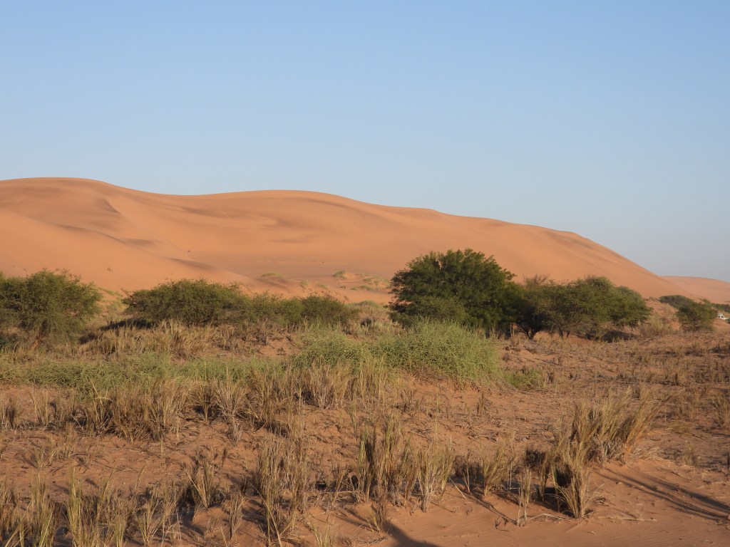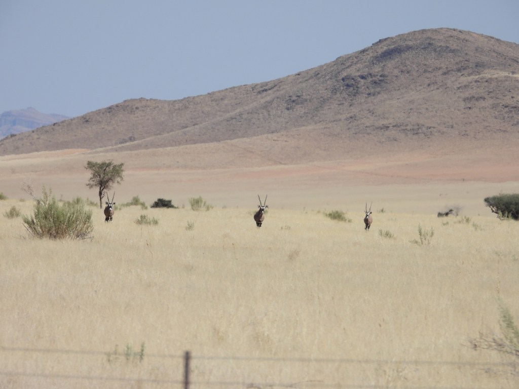 The desert itself was stark, with nothing but dead, dry grass and a few shrubs. It was nonetheless a good place to see Namibia’s national animal, the Oryx (AKA Gemsbok). Oryx are very well adapted to deserts and they can survive for long periods off of the water in the plants they eat.