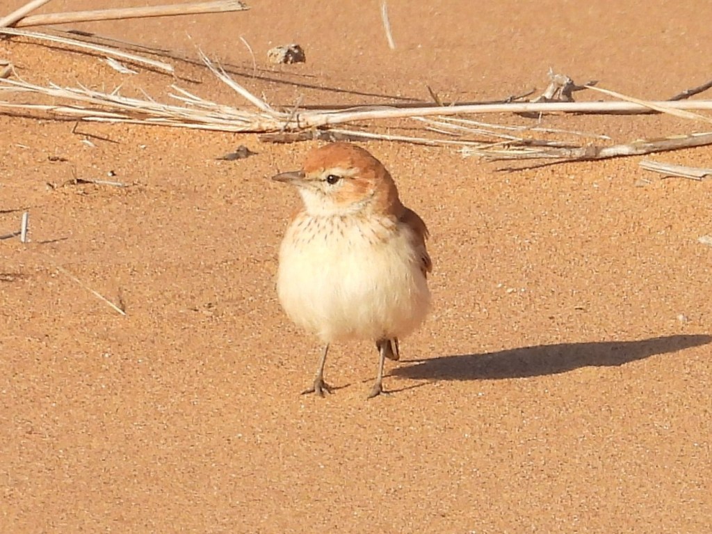 We found the larks at our second stop, right in some perfect habitat: a shrubby plain next to a sand dune.