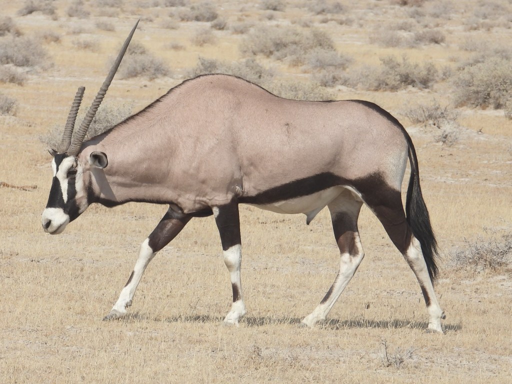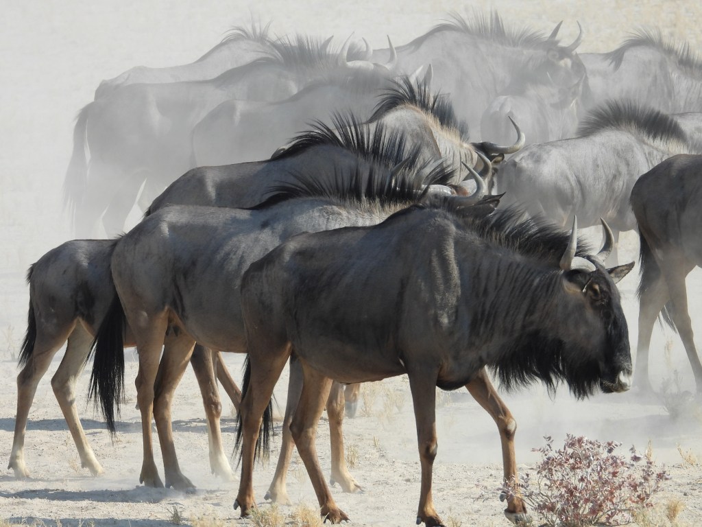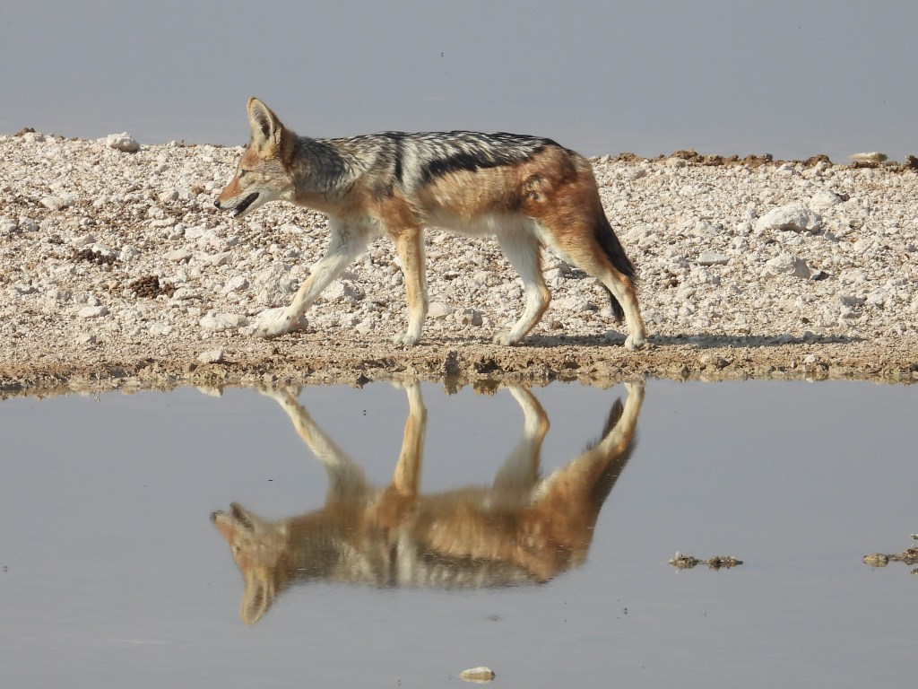 The next stop on the trip was Etosha National Park, a large (22,270 km2) wildlife reserve located in northern Namibia. Etosha is famous for its astonishing concentration of wildlife, which includes almost all of the iconic African big game animals, including savannah elephants, white & black rhinoceros, giraffes, zebras, gazelles, oryx, wildebeest, lions, leopards, cheetahs, hyaenas, and warthogs. The only large species missing are hippos (there’s not enough water) and buffalo. There are a lot of small mammals to see as well, such as African wild cats, mongooses, and jackals. The birdlife is impressive as well, but I’m going to focus on the mammals in this post.