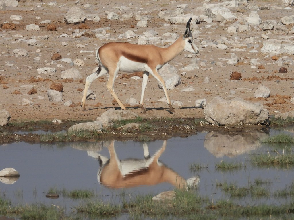 A few of the waterholes in the park are natural but many are fed by man-made boreholes. The artificial waterholes are a necessity because the entire park is fenced. Before the park was fenced, many large mammals would migrate out of it during the dry season. Now that they can’t migrate out of the park, they must be provided with water.