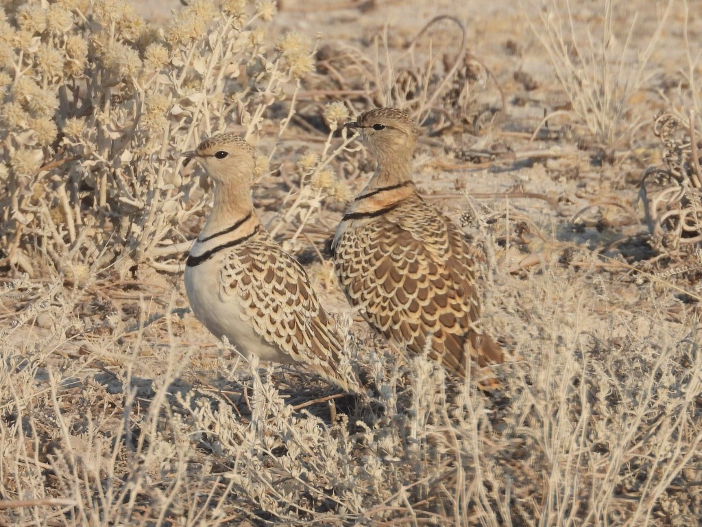 Coursers (Glareolidae) are another family of birds that are generally well-suited to living in arid environments. Interestingly, they are in the order Charadriiformes, which contains many shorebirds and pelagic birds that live around water. We found two courser species in Etosha: the Double-banded and Burchell’s Courser.