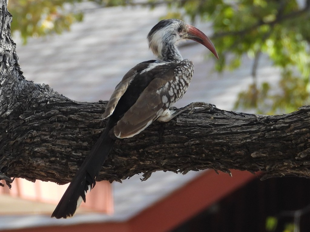 Hoopoes are in their own family (Upupidae) but they are in the order Bucerotiformes, which also contains hornbills. Hornbills are common in Etosha and can often be seen foraging around the grounds of the various lodges in the park. The lodges and rest stops are really the only places where one can bird on foot in Etosha, but there are often a lot of birds around the lodge properties.