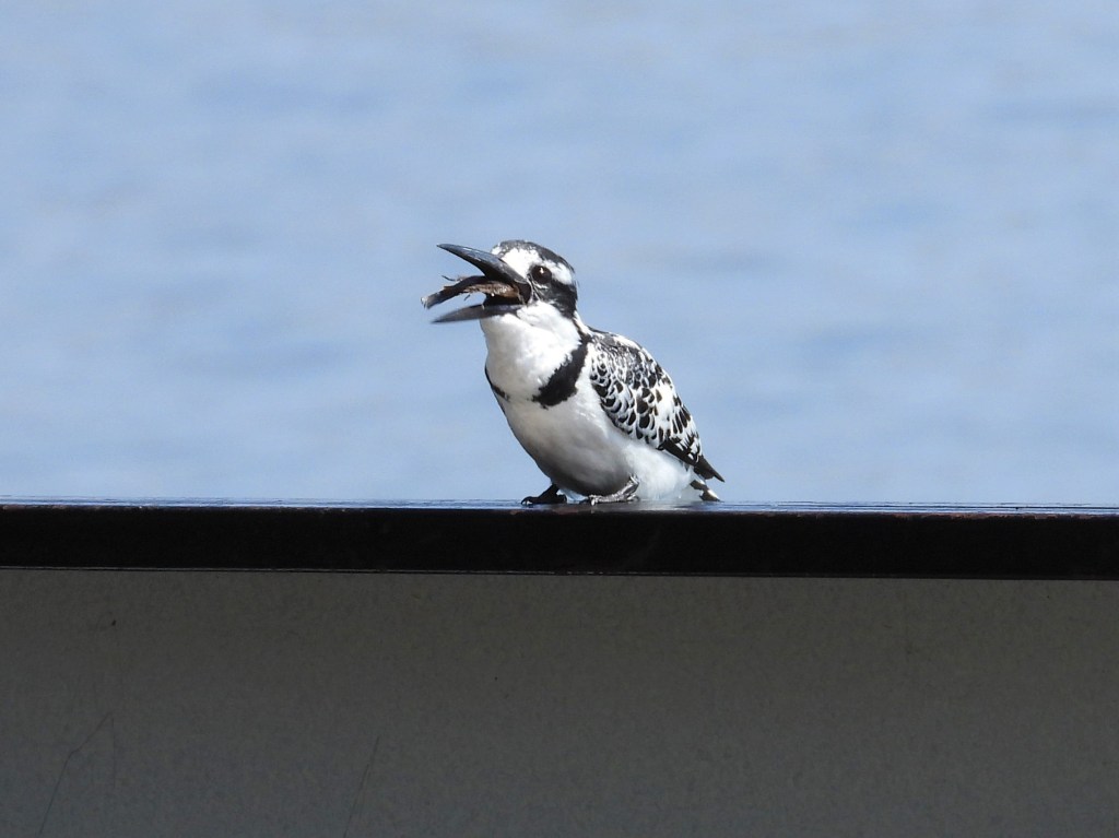 Kingfishers are very abundant along the river. I watched the above Pied Kingfisher dive for fish near the docks, and after a couple of tries, it emerged with a good-sized fish. Aside from Pied Kingfishers, we also saw Malachite and Giant Kingfishers.