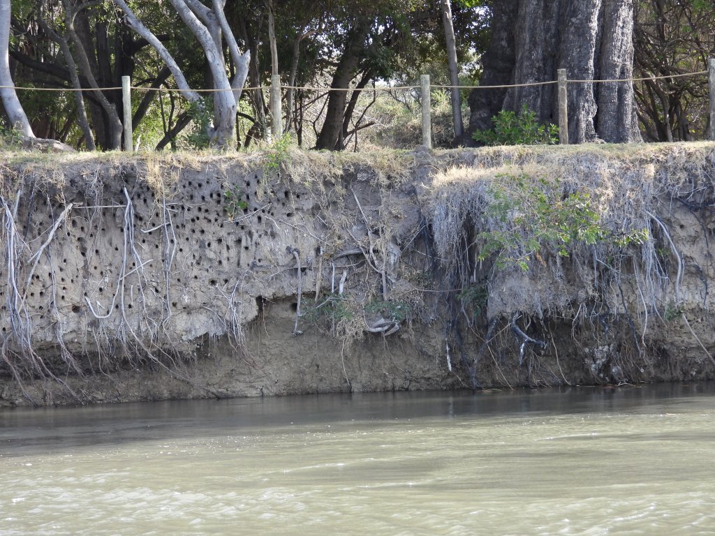 There was also a White-Fronted Bee-eater nesting site along the river (below). It wasn’t breeding season for bee-eaters, but there were a few of them still around.