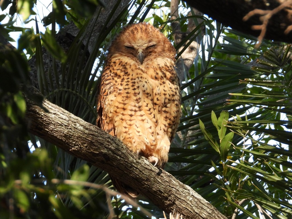 The above Pel’s Fishing Owl was one of the highlights of the boat cruises. They are apparently not very common, but one of the local guides managed to find one at its day roost. As their name suggests, they do indeed prey on fish. When they fish, they do not typically enter the water but instead pluck fish from just below the water’s surface with their talons.