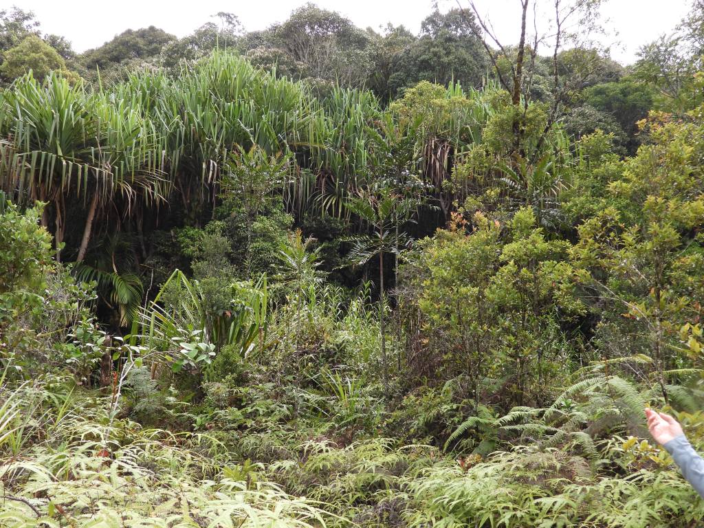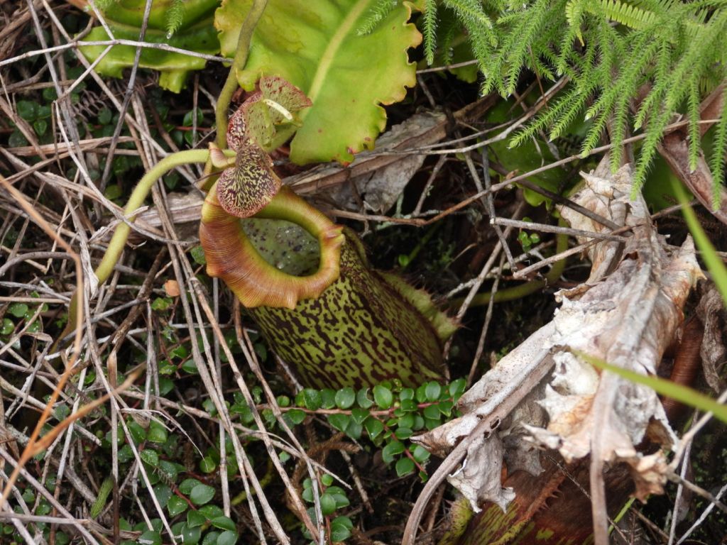 I found the plants along the Anaso track quite interesting. The track was very rich in tree ferns and Pandanus (screw pines), as well as lycopods. There was also one spot that had at least three different species of carnivorous pitcher plants. I’ve seen pitcher plants in North America as well, in California and northeastern Alberta. The “pitcher” leaf morphology has actually evolved multiple times in unrelated plant groups. The big advantage that the pitcher leaves provide the plant is a way of obtaining nitrogen other than through the roots. That way, pitcher plants can grow well in areas where the soil is low in nitrogen, or where there is no soil. Many Asian pitcher plants are actually epiphytes, which means that they grow off of other plants.