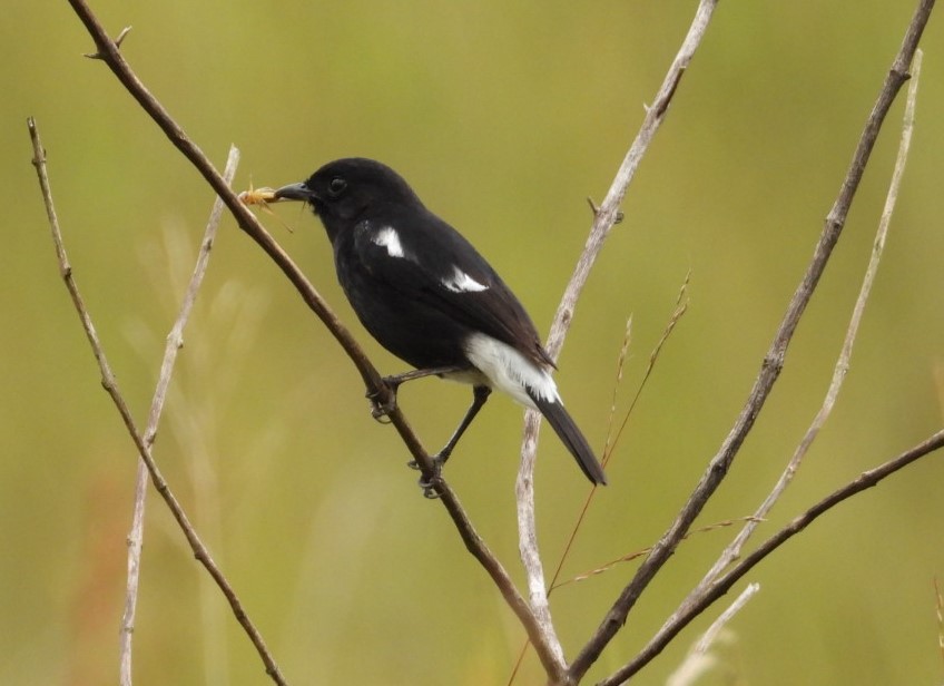 We also went birding during the evening by a rice field near the town of Wuasa. Owls were the main target and we did get good views of two Australasian Grass Owls and a distant view of a Sulawesi Masked Owl. Several Great Eared Nightjars also showed up. Birds I managed to get okay to decent pictures of included the below Australasian Swamp Hen, Lesser Coucal, Yellow-billed Malkoha, and Pied Bushchat. Click the pictures to make them bigger. Alfred Wallace described the Yellow-billed Malkoha as being “one of the finest of the known cuckoos.” It is indeed a beautiful, eye-catching bird.