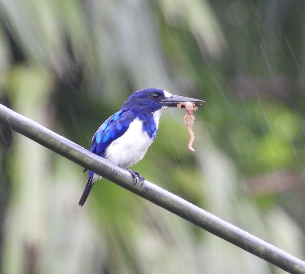 After our speedboat arrived on Sofifi, we were driven to the Subaim area. This was, again, a wild ride. People drive very fast on Halmahera! It was a four-hour drive to Subaim so we didn’t have too much time for birding but we did stop to view a beautiful Blue-and-White Kingfisher that was perched on a wire.